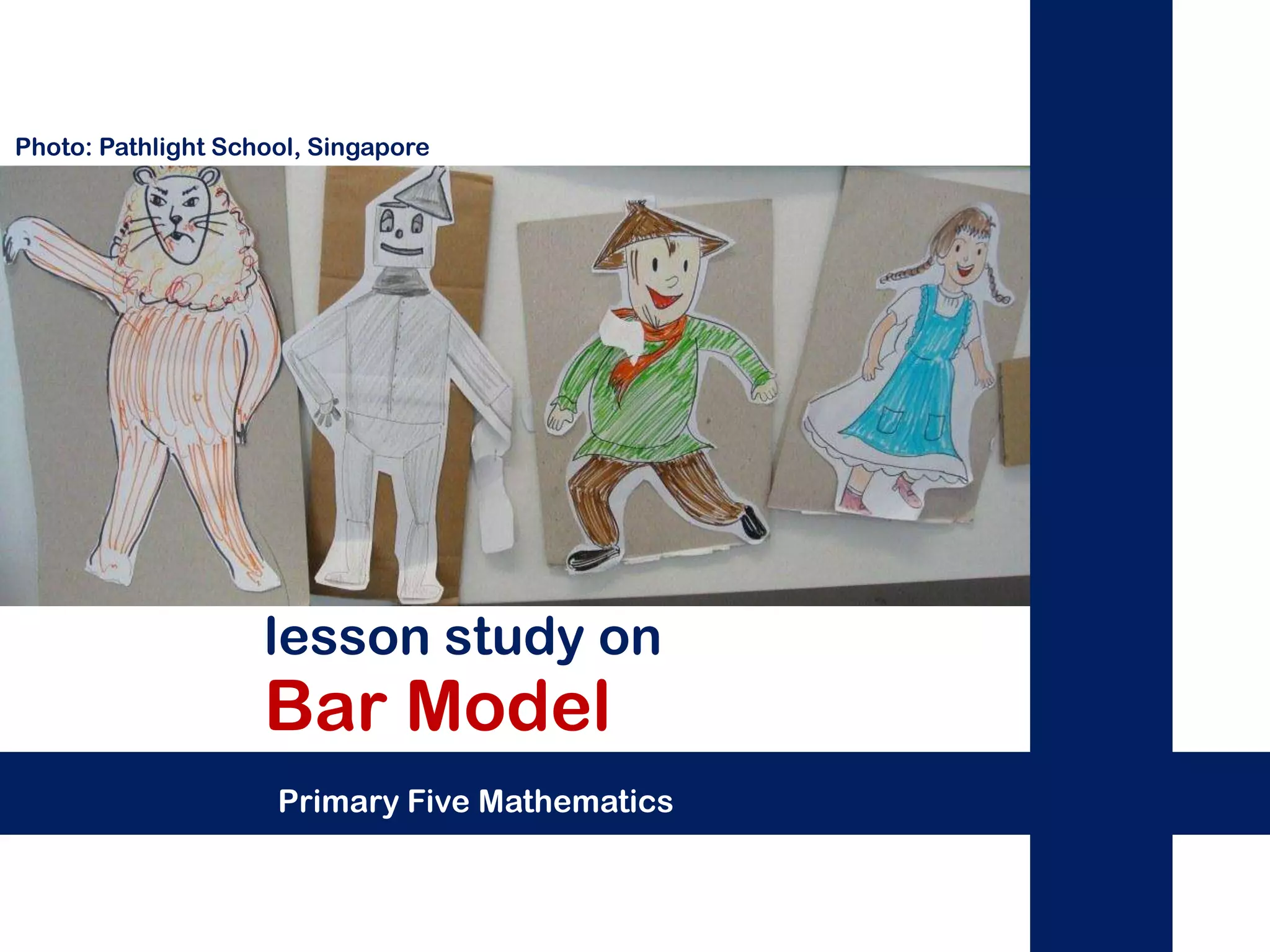 The document discusses a lesson study conducted at Pathlight School in Singapore focused on primary five mathematics, specifically using bar models to engage students in learning. It outlines the professional learning goals of the educators involved, their planning process, and the observations made during the lesson regarding student engagement types. The use of colored paper strips was evaluated for its effectiveness in helping students relate diagrams to problem situations, while calculations were primarily done independently by students.