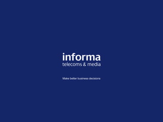 This document discusses mobile carrier trends in the machine-to-machine (M2M) market. It notes that the M2M market is growing significantly and expanding into new verticals like consumer electronics and healthcare. Operators are offering various business models for M2M connectivity including traditional wholesale plans, bundled connectivity, and application-specific plans. The value of M2M connectivity is shifting from the cost of data to value-added services like quality of service guarantees and managed services. The M2M market is also becoming more international in scope.