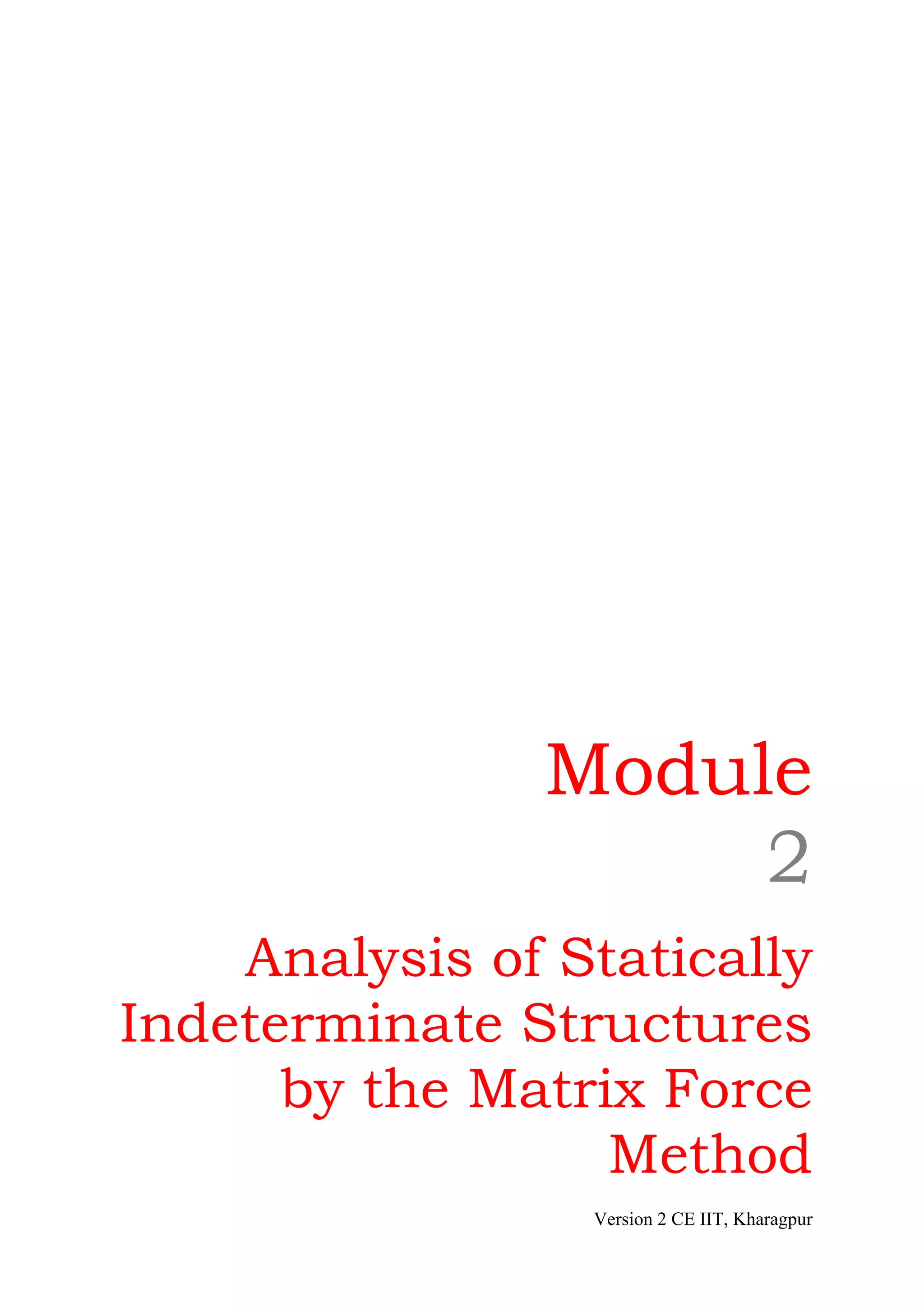 This document discusses the analysis of statically indeterminate plane frames using the force method. It provides examples of how to: (1) analyze rigid frames by selecting redundant reactions, writing compatibility equations, and solving for member forces; (2) account for support settlements by including the predicted support displacement in the compatibility equation; and (3) calculate joint rotations and displacements to sketch the deformed shape of the frame under loading. The method involves releasing constraints to determine a primary structure, using the unit load method to calculate displacements, and applying the principle of superposition to determine final member forces and deformations.