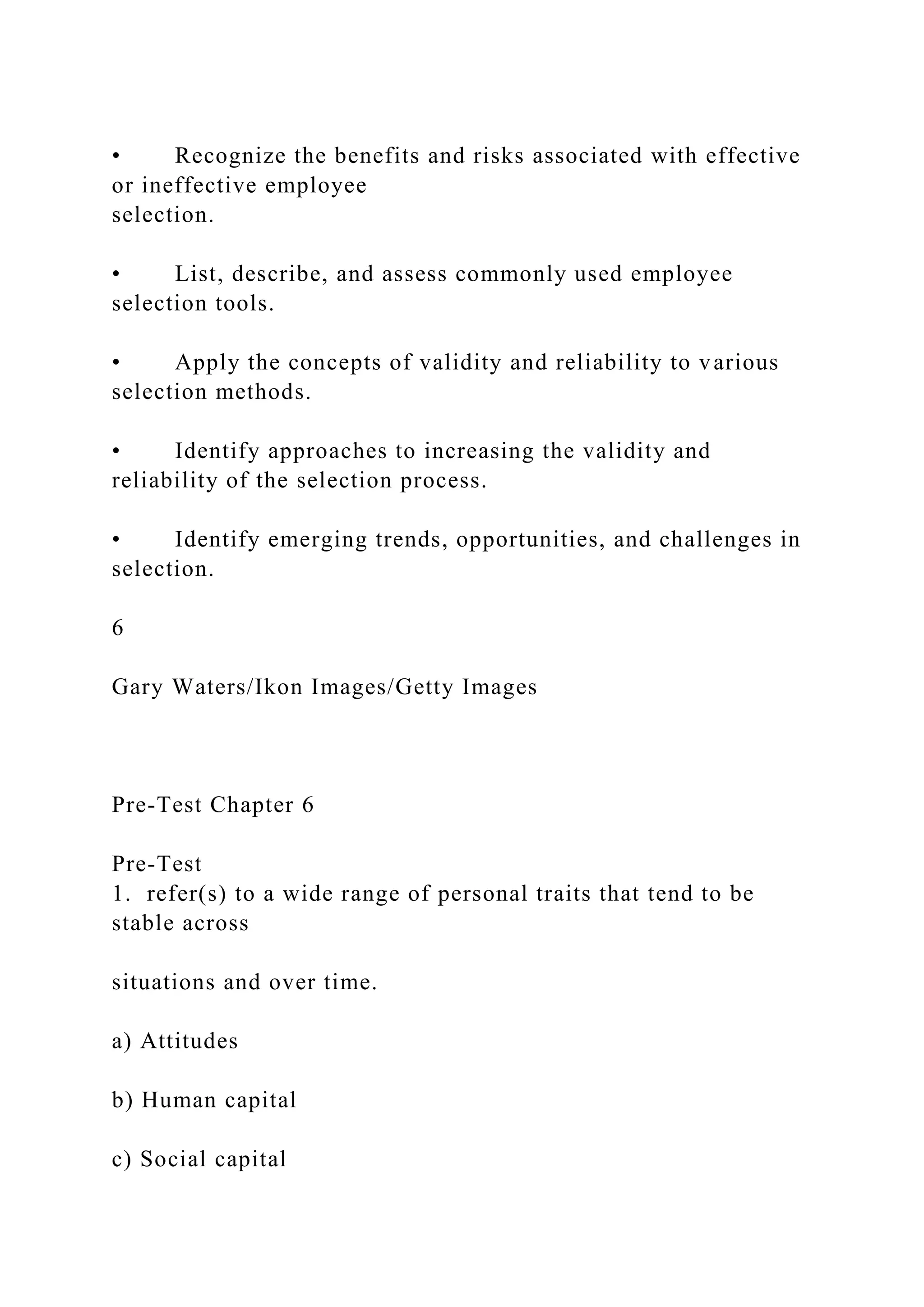 The document outlines financial transactions for Bass Boats Inc. over two years, including equipment purchases, sales, tax remittances, note payables, and accrued expenses. It also discusses employee selection processes, highlighting the importance of identifying applicable traits, skills, and selection criteria that align with organizational goals, emphasizing the role of HRM in advising hiring managers. Additionally, it includes pre-test questions and insights into individual differences, personality traits, and their implications for effective employee selection.