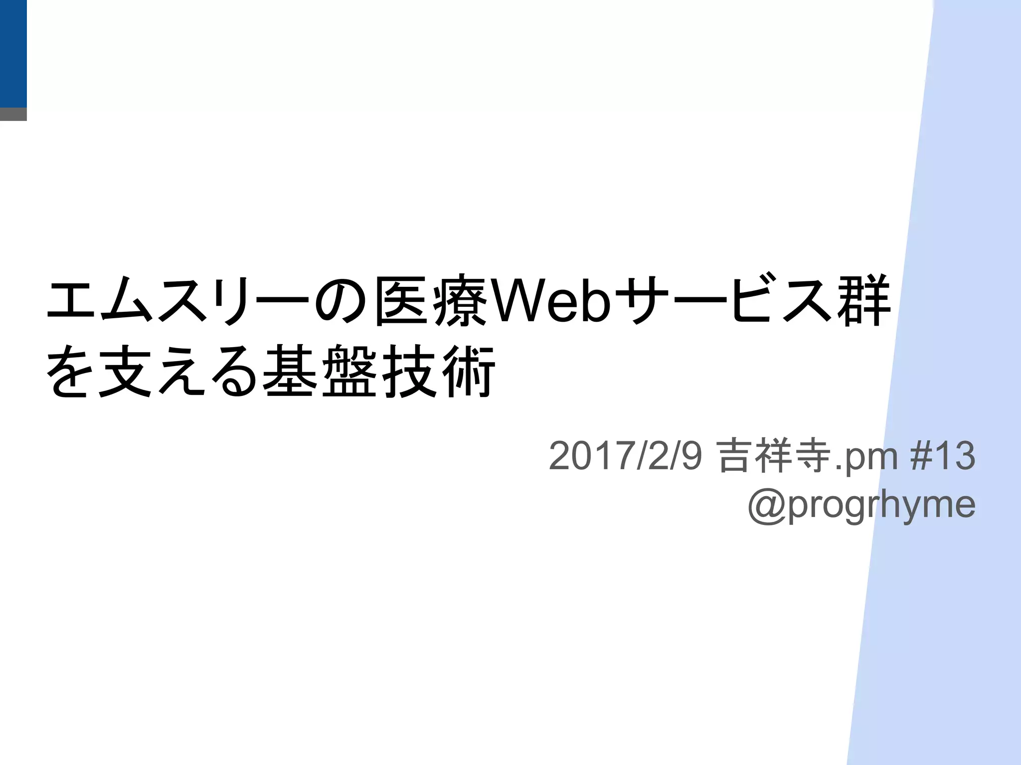 エムスリーの医療Webサービス群 を支える基盤技術 2017/2/9 吉祥寺.pm #13 @progrhyme