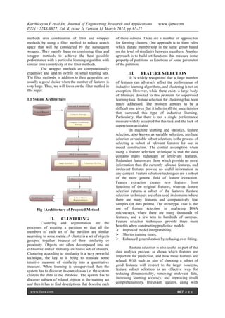 This document presents a fast clustering-based feature selection algorithm aimed at improving the efficiency and effectiveness of feature selection for high dimensional data. The proposed algorithm divides features into clusters and selects relevant features from each cluster to form a diverse subset, thereby enhancing classification accuracy. Experimental evaluations demonstrate that this approach not only reduces the number of features but also improves classification outcomes compared to existing methods.