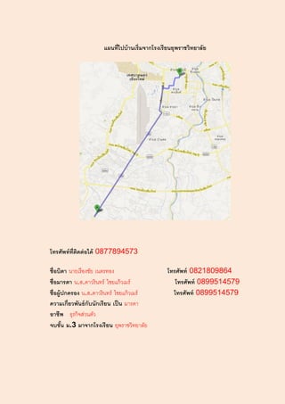 แผนที่ไปบ้านเริ่มจากโรงเรียนยุพราชวิทยาลัย โทรศัพท์ที่ติดต่อได้ 0877894573 ชื่อบิดา นายเรืองชัย