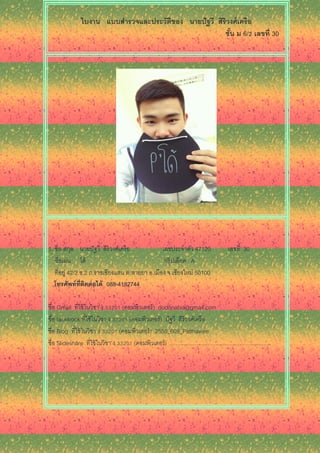 ใบงาน แบบสำรวจและประวัติของ นาย ปพนธีร์ อินทะวิชัย