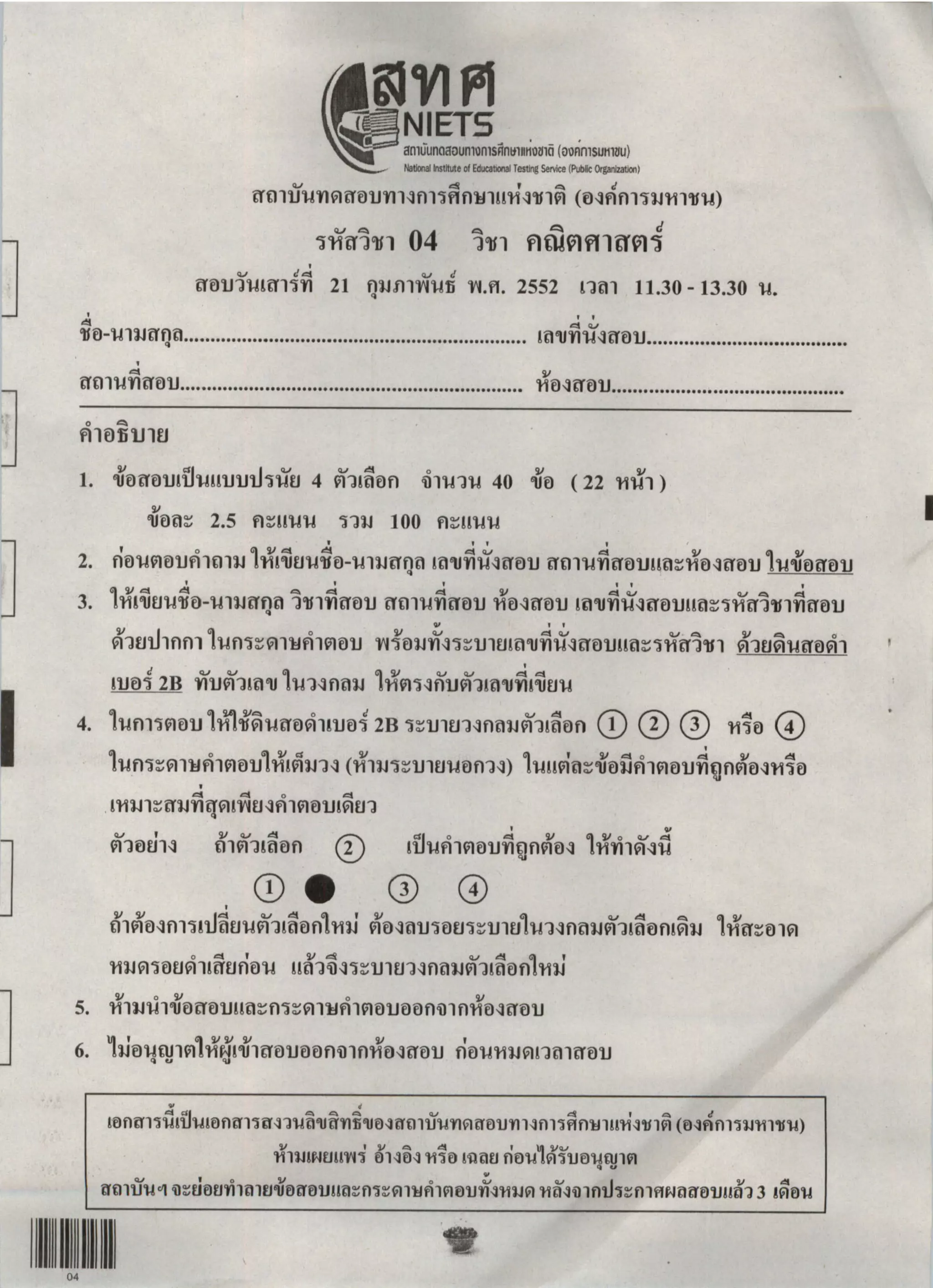 รหัสวิชา 04 คณิตศาสตร หนา 7