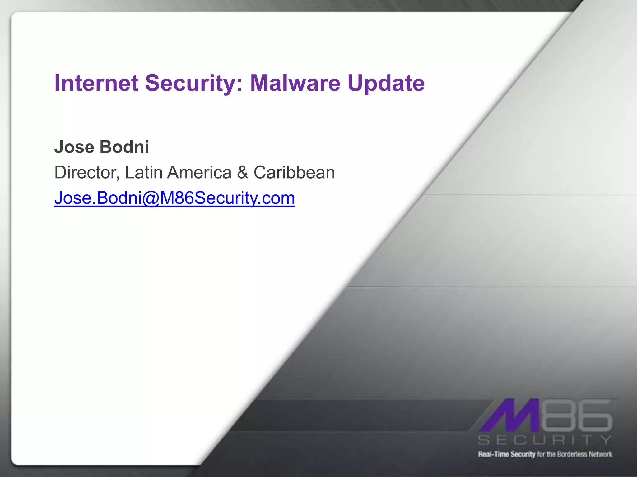 The document discusses internet security threats and solutions from M86 Security. It notes that malware is increasingly being hosted on legitimate websites through hacking or by embedding malicious code. It also discusses "blended threats" where attackers send links to malware-infected legitimate websites that can bypass traditional security filters. The document outlines M86 Security's multi-tiered threat protection approach using URL filtering, signatures, and real-time code analysis. It provides an overview of M86 Security products including appliances, software, and cloud-based options for web security, email security, and compliance needs.