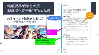 • 今回の技術の標準化と普及 – いざという時に情報を繋げられる仕組みを交通事業者や乗換案内に •