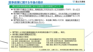 • 数多くの交通事業者ごとにITシス テムをカスタマイズしている現状 • アーキテクチャやインタフェース の標準化で –