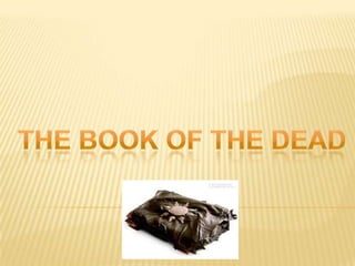 The document discusses several aspects of the ancient Egyptian Book of the Dead based on sources from the British Museum, Oxford Encyclopedia of Ancient Egypt, Wikipedia, and images found online. It describes the book's organization into four sections covering the deceased's journey through the underworld. Key chapters and scenes are summarized, including the weighing of the heart in Chapter 125 and obstacles faced by the deceased like demon gatekeepers. The purpose and contents of the book are examined, along with its use from the New Kingdom through the Roman period.
