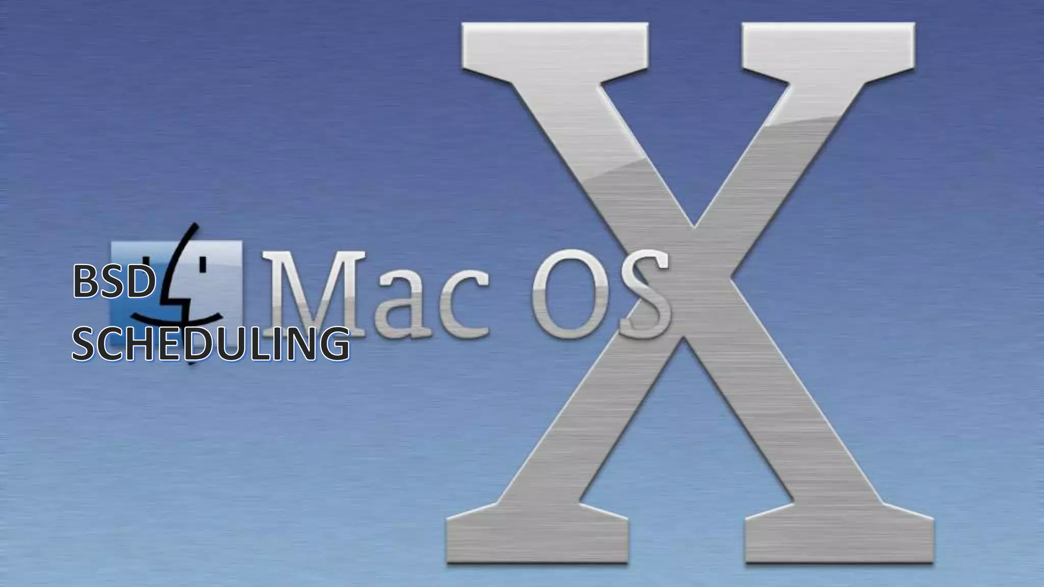 Mac OS X uses a Mach scheduling system with different process priorities like normal, high, and real-time. It also uses pThreads API to adjust thread priorities within tasks. Kernel threads are created through I/O Kit functions and deleted using thread_terminate after locking and disabling timers. The renice command can alter the priority of running processes by ID, group, or user.