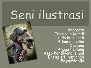 Dokumen tersebut membahas tentang ilustrasi yang merupakan hasil visualisasi dari suatu tulisan dengan teknik seni untuk menerangkan atau menghiasi tulisan seperti cerita, puisi, atau informasi tertulis lainnya agar lebih mudah dipahami.
