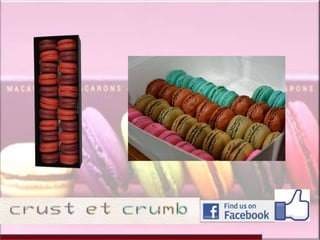 Macarons are French cookies made with almond flour and egg whites. They have a soft interior filled with ganache, jam, or chocolate. While macarons originated in France in the 18th century, they can now be found in bakeries, cafes, and online around the world. Making macarons requires precise techniques and ingredients to achieve their signature smooth shells and delicate texture. Their labor-intensive production and use of premium ingredients contributes to their luxury status and higher price compared to other cookies.