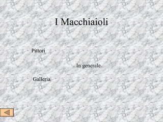 Il documento trattiene sulla nascita e l'evoluzione del movimento artistico dei macchiaioli, attivo in Italia tra il 1856 e il 1867, caratterizzato dalla ricerca di una pittura antiaccademica che catturasse l'impressione del vero attraverso l'uso di macchie di colore. I principali esponenti del movimento si riunivano al caffè Michelangelo a Firenze, creando un'importante comunità artistica che influenzò anche gli impressionisti francesi. Critici come Diego Martelli e Adriano Cecioni hanno giocato ruoli cruciali nell'evoluzione di questo movimento, contribuendo a consolidarne le basi teoriche e pratiche.