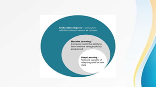 The document discusses an overview of machine learning, defining it as a field of computer science that enables computers to learn from experience without explicit programming. It outlines the types of machine learning, including supervised, unsupervised, semi-supervised, and reinforcement learning, and highlights its applications in systems like personalized news feeds and data mining. The document also mentions notable machine learning products and inventions, such as IBM Watson and Google’s Tensor Processing Units.