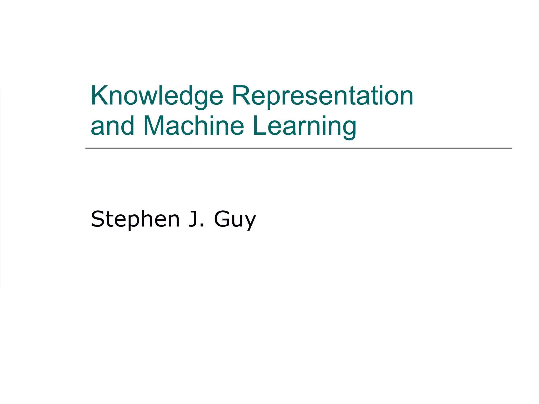 1. The document discusses different approaches to knowledge representation and machine learning including first order logic, artificial neural networks, Bayesian networks, and reinforcement learning.