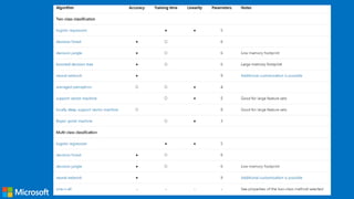 The document outlines a session on building machine learning classifiers using Azure Machine Learning (AML), covering the definition of machine learning, the capabilities of AML, and the process of developing and deploying machine learning models. It discusses various machine learning algorithms, including supervised and unsupervised learning, as well as classification techniques. Additionally, it highlights business use cases and resources for further learning about Azure ML.