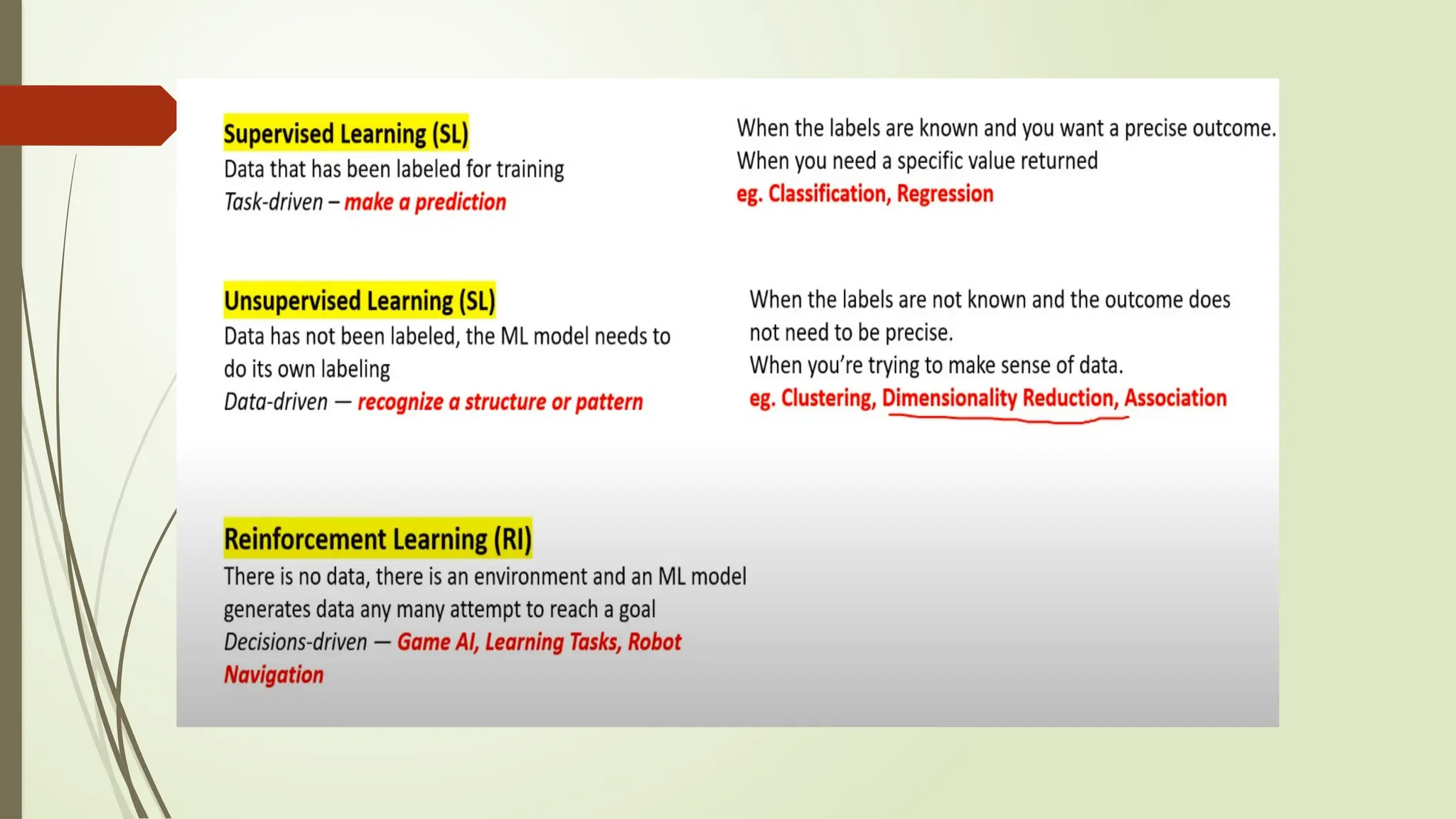 Based on the methods and way of learning, machine learning is divided into mainly four types, which are: