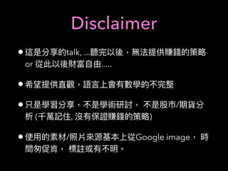 3. It presents some ideas for modeling trading problems using technical indicators or fundamental factors as inputs to classifiers, regressors or sequence models, and using reinforcement learning to optimize trading strategies.