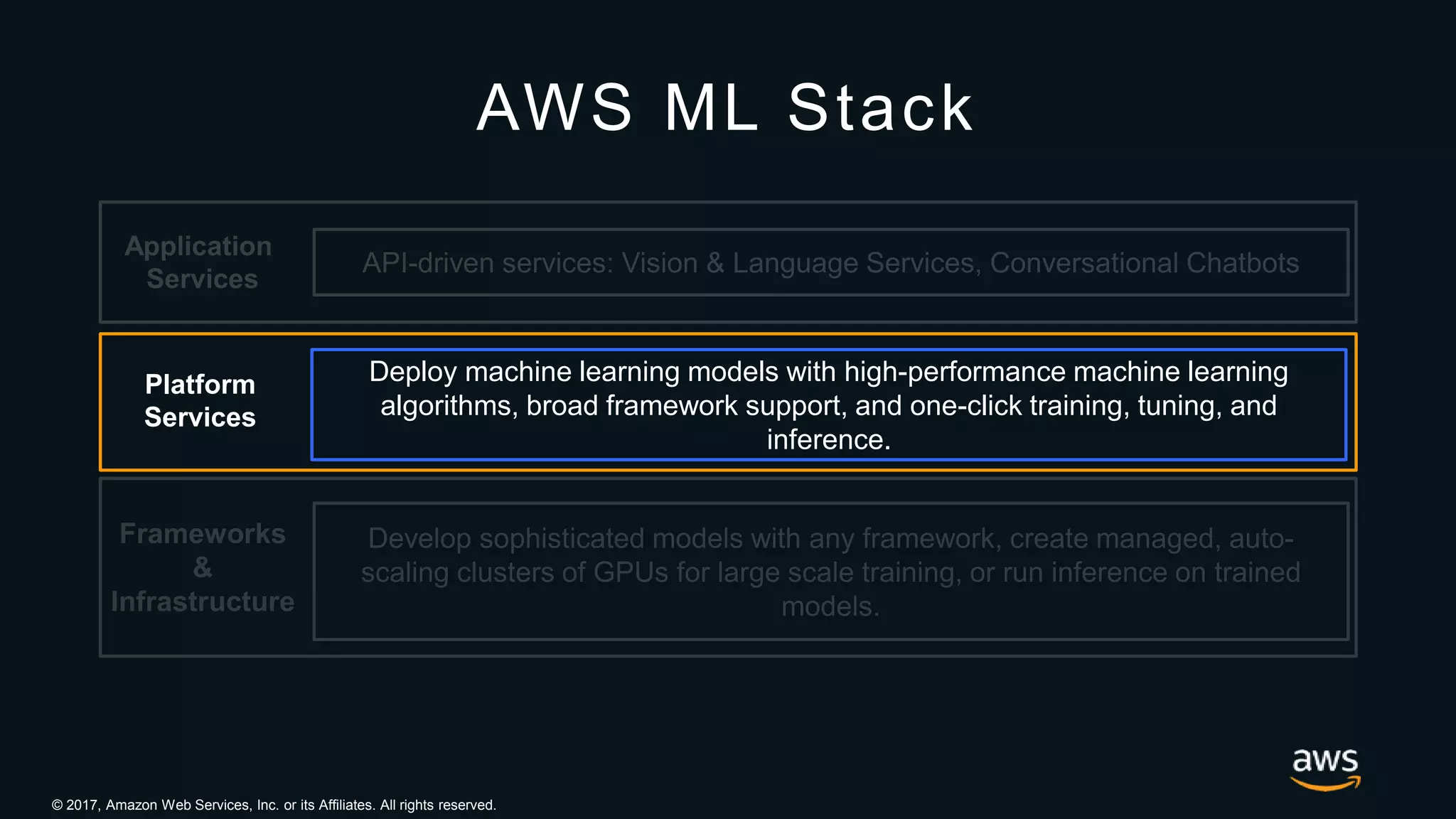The document discusses Amazon SageMaker, a fully managed machine learning platform. It provides an overview of the machine learning workflow from data collection and processing to model training, evaluation, deployment and monitoring. SageMaker allows users to build, train and deploy machine learning models using pre-built algorithms, bringing their own training code, or custom algorithms. It offers a scalable, flexible and cost-effective environment for developing and hosting machine learning models.