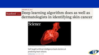 Machine learning and artificial intelligence are rapidly transforming healthcare and medicine. Advances in genetic sequencing have enabled the mapping of human and microbial genomes at low costs. Researchers are using machine learning to analyze genomic and microbiome data to better understand health and disease. Non-von Neumann brain-inspired computing architectures are being developed for machine learning applications and could accelerate medical research and diagnostics. These technologies may help create personalized health coaching and move medicine from reactive sickcare to proactive healthcare.