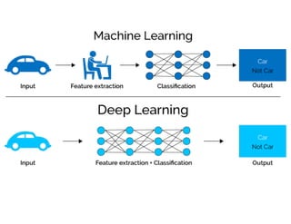 This document provides an introduction to machine learning and AI, including definitions of machine learning concepts like supervised and unsupervised learning. It lists several machine learning apps and tools, such as apps for object classification and ML Kit. It also provides links to tutorials for face and car detection projects using Raspberry Pi and OpenCV. At the end, it includes contact information for a machine learning expert.