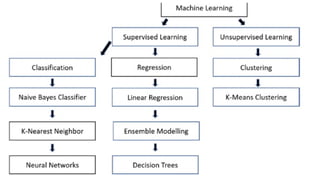 The document outlines the learning objectives for a machine learning course, focusing on the distinctions between classification and regression tasks. It explains the importance of machine learning, types of learning (supervised and unsupervised), and the processes involved in analyzing business problems. Additionally, it includes examples of problem statements related to classification and regression as well as a practical task involving centroid calculation.