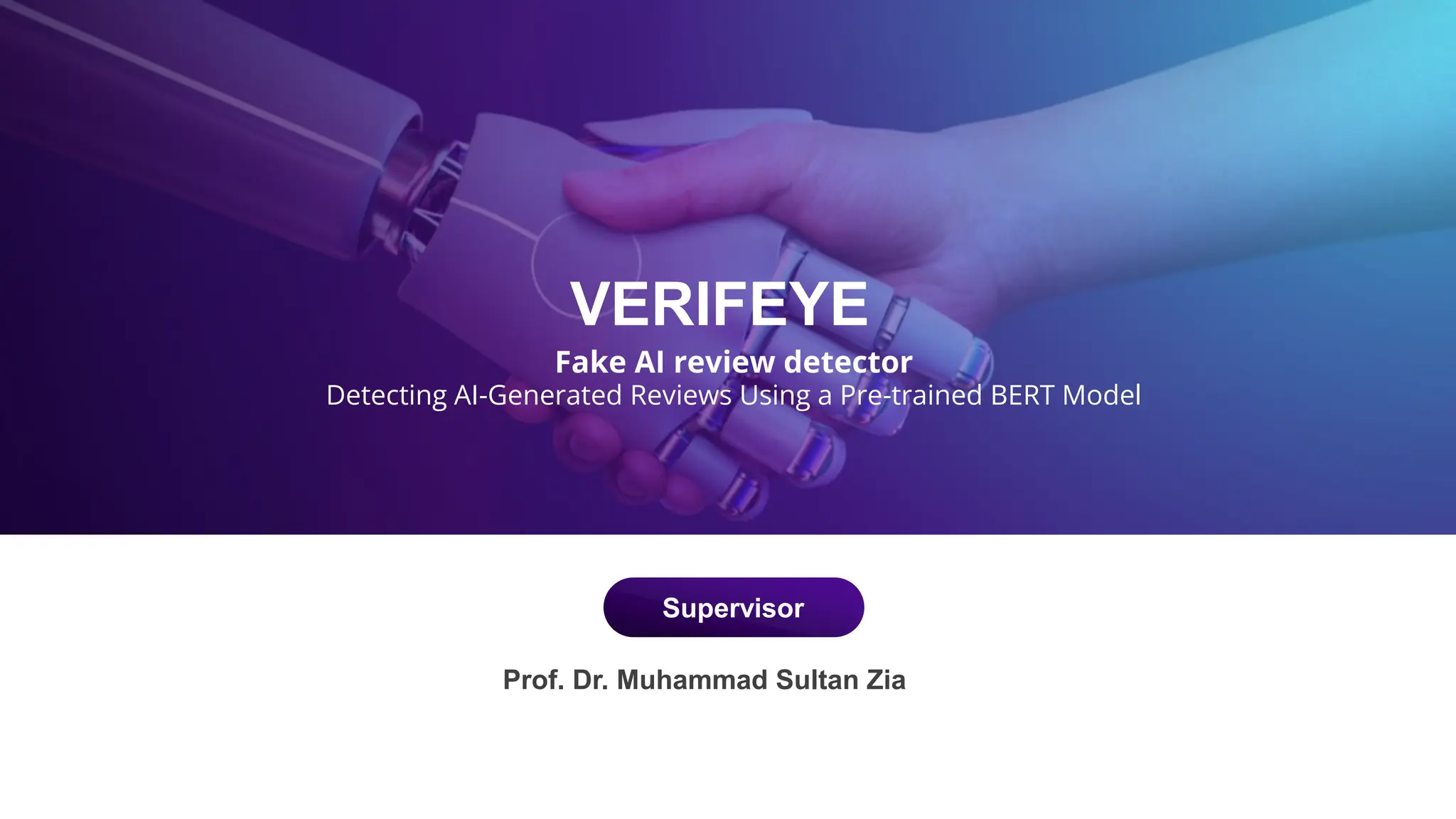 Verifeye is an advanced tool designed to detect AI-generated reviews using a pre-trained BERT model, addressing the challenges of authenticity and misinformation in online platforms. The study evaluates multiple detection tools and emphasizes the importance of advanced methods for distinguishing between real and AI-generated content. With a focus on e-commerce and social media applications, Verifeye aims to enhance consumer trust and market integrity.