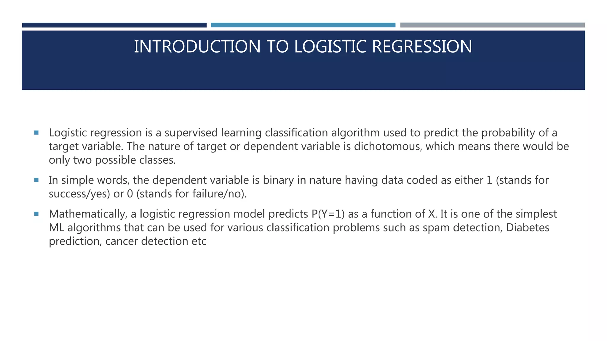 This document provides an overview of logistic regression and support vector machines (SVM). It discusses the key concepts, assumptions, and types of logistic regression, including binary, multinomial, and ordinal logistic regression. It also explains the working, concepts, and goal of SVM, which is to find a maximum marginal hyperplane to divide datasets into classes. The next session will cover implementing SVM in Python.