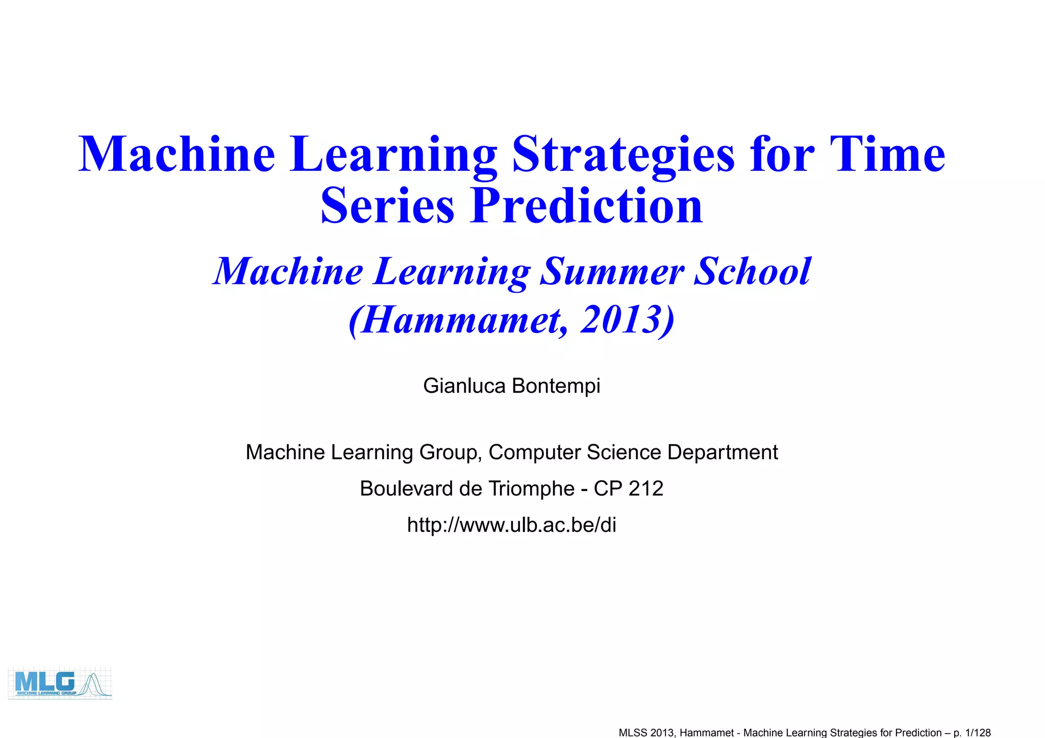 This document introduces machine learning strategies for time series prediction. It begins with an introduction to the speaker and his background and research interests. It then provides an outline of the topics to be covered, including notions of time series, machine learning approaches for prediction, local learning methods, forecasting techniques, and applications and future directions. The document discusses what the audience should know coming into the course and what they will learn.