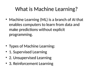 • Machine Learning (ML) is a branch of AI that