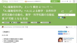 : 理論(ニュートン力学) 第3の科学 : シミュレーション(計算科学) 第4の科学 : データサイエンス(機械学習・深層学習) 科学史の流れ 第5の科学 : 人工知能型科学(汎用人工知能)※ 理化学研究所 高橋恒一氏