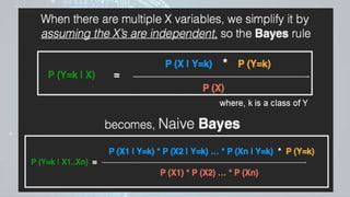Machine learning is a field of study that gives computers the ability to learn without being explicitly programmed. There are three main types of machine learning: supervised learning, unsupervised learning, and reinforcement learning. Supervised learning uses labeled training data to infer a function that maps inputs to outputs, unsupervised learning looks for hidden patterns in unlabeled data, and reinforcement learning allows an agent to learn from interaction with an environment through trial-and-error using feedback in the form of rewards. Some common machine learning algorithms include support vector machines, discriminant analysis, naive Bayes classification, and k-means clustering.