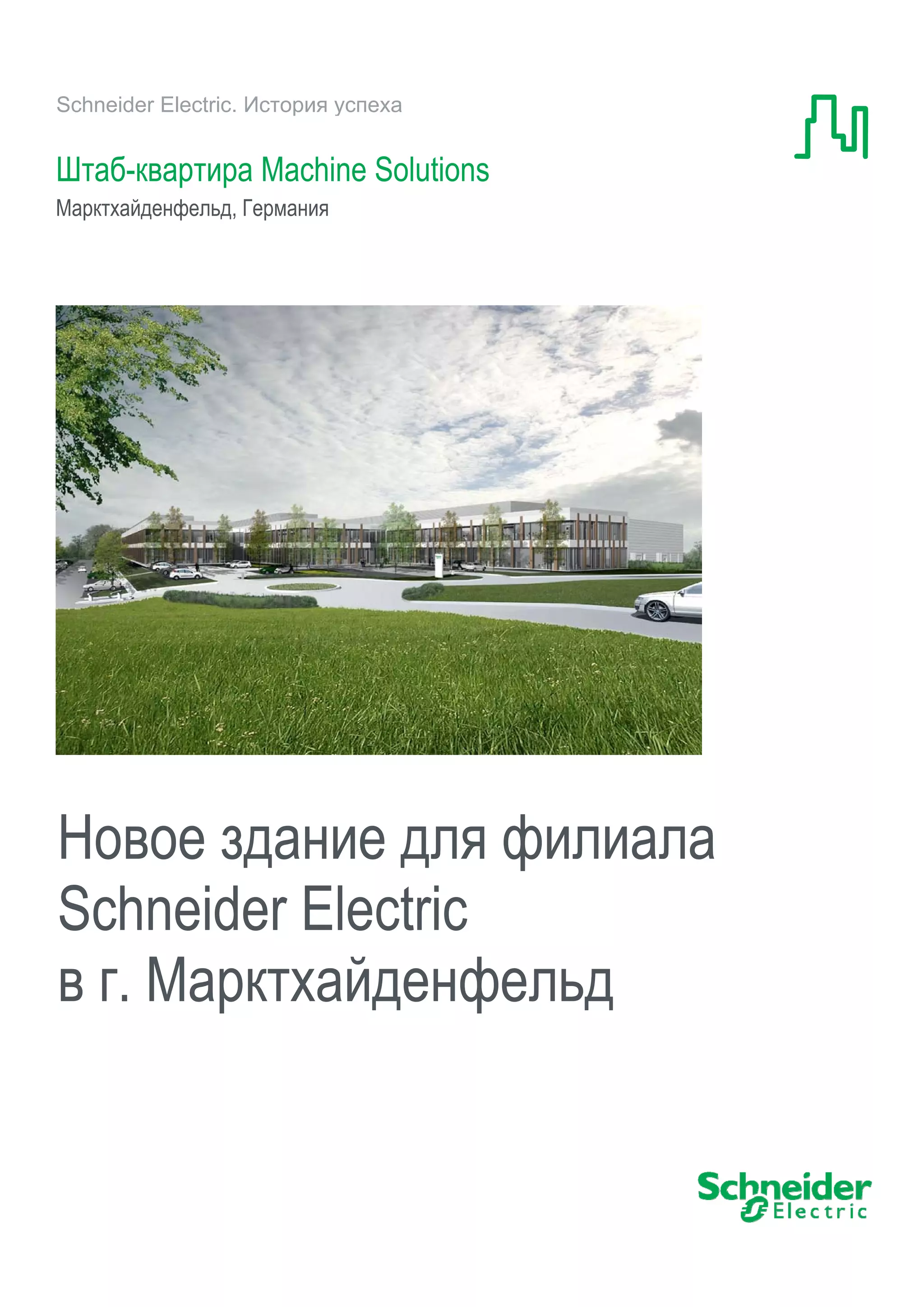 Документ описывает новую штаб-квартиру Schneider Electric в Марктхайденфельде, Германия, которая включает интегрированные решения для управления энергопотреблением и автоматизации зданий. Проект достиг энергетической эффективности на 15% ниже нормативов и реализует концепцию Ecostruxure, обеспечивая оптимальное использование электроэнергии через современные системы управления. Штаб-квартира также включает научно-исследовательские лаборатории и административные помещения, подчеркивая приверженность компании к устойчивому развитию и инновациям в области управления энергетикой.