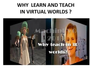 The document discusses the use of machinima in language education, highlighting its role in creating engaging educational video materials within virtual worlds. It outlines the goals of the Camelot Language Learning Project, which include producing guidelines for machinima creation and promoting blended learning practices. The document also emphasizes various pedagogical functions of machinima such as introducing topics, modeling language use, and facilitating collaborative projects.