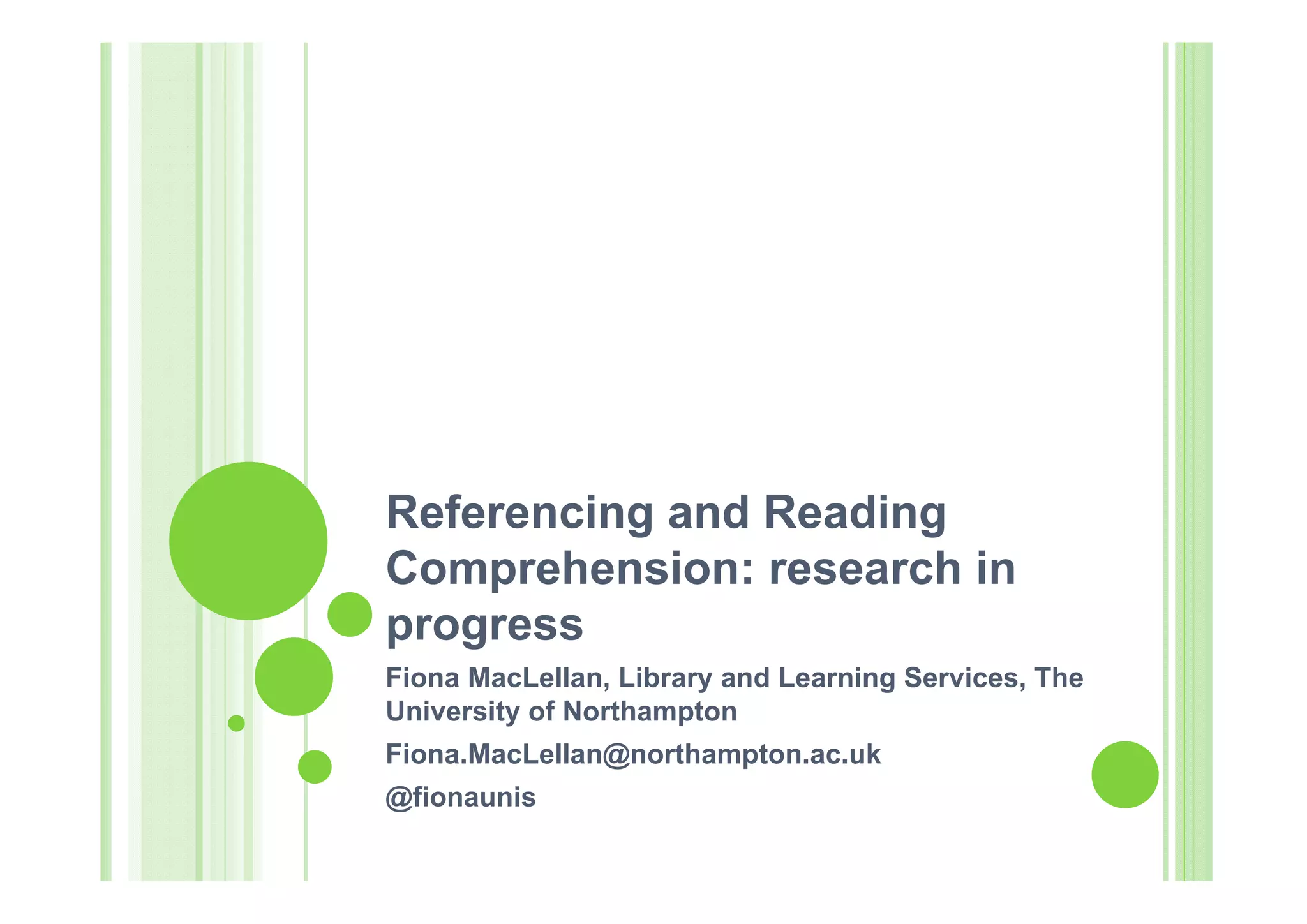 This document outlines a research project investigating the impact of using parenthetical referencing systems on students' reading fluency and comprehension. The project aims to discover if parenthetical referencing unfairly disadvantages specific student groups. The project plan involves a literature review, interviews with academic staff, analyzing assignment marks using different referencing systems, student questionnaires, and follow-up interviews with reading comprehension tests. The researcher outlines following ethics guidelines and notes the literature on this topic is limited. Next steps include completing staff interviews, student questionnaires, interviews, and data analysis.