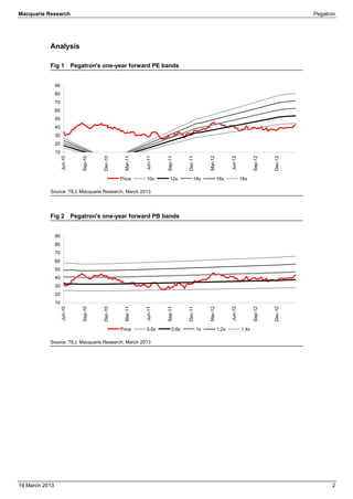 Pegatron's stock price is NT$43.80. Macquarie maintains its Outperform rating and raises its 12-month target price to NT$55 from NT$51. Pegatron remains well positioned as the major supplier of Apple's iPhone mini, and iPad mini demand has been better than expected. Macquarie also expects upside from Pegatron's non-core business Casetek and higher-than-expected non-notebook business margins. Macquarie raises its 2013-2014 EPS estimates and sees upside catalysts from new order gains and improving revenue and margins.