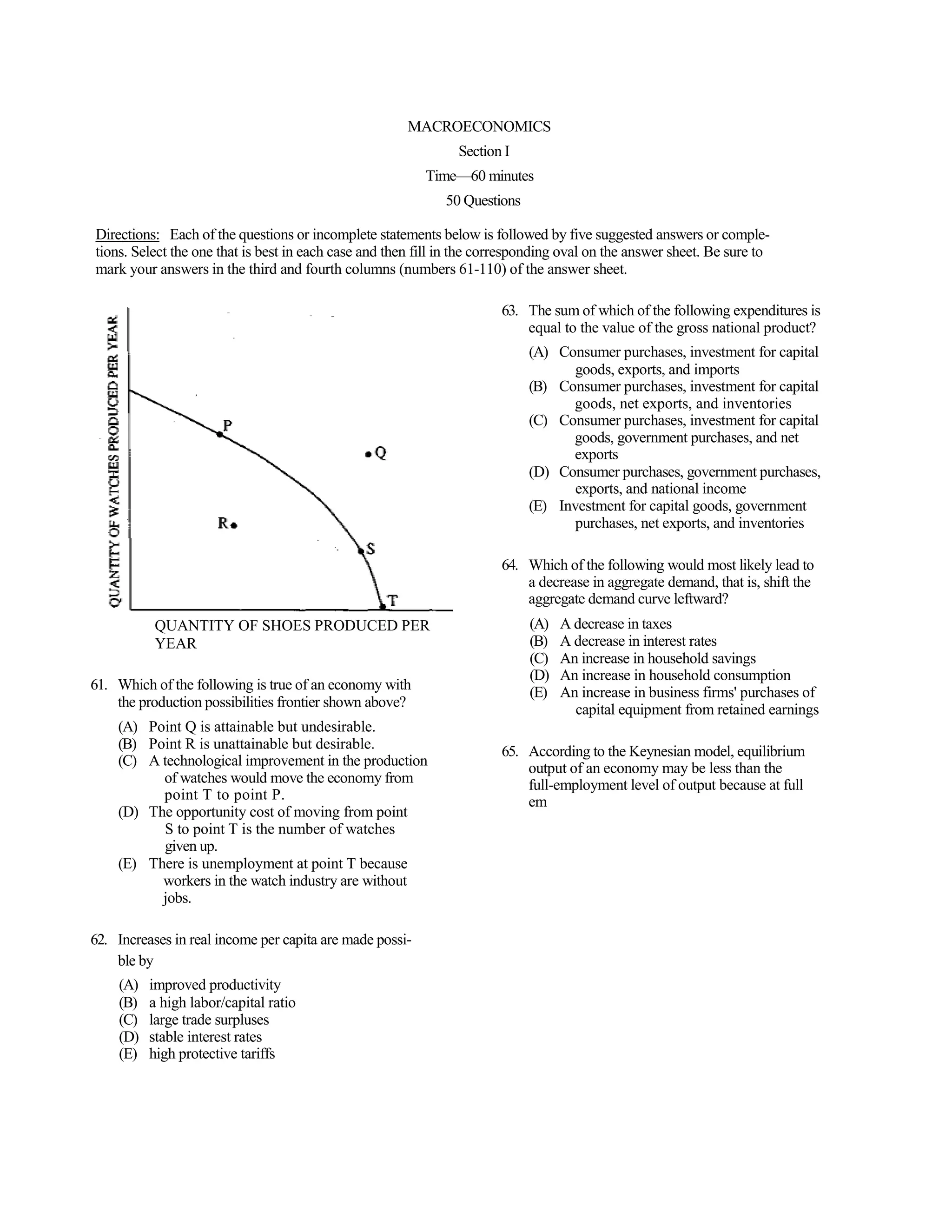 The document is a 50 question macroeconomics exam covering topics like: