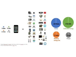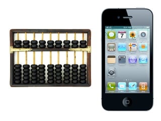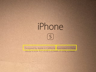 The document discusses the global supply chain involved in producing iPhones. Parts come from companies located in the U.S., U.K., Germany, Korea, Japan, Taiwan, and China. iPhones are then assembled in China and shipped to the U.S. for around 54 cents each. It also notes that innovation requires ideas, ideas require people, and every person has the power to create wealth by making others happy.