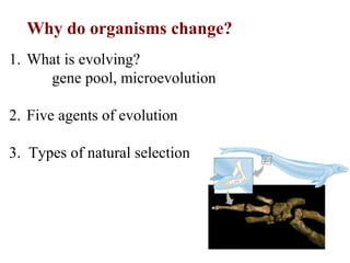 Populations, rather than individuals, are the units of evolution. A population is a group of interbreeding individuals of the same species living in the same area. Five agents can drive microevolution within a population: mutation, genetic drift, gene flow, non-random mating, and natural selection. Natural selection leads to differential reproductive success and is the only agent that can result in adaptation to the environment.