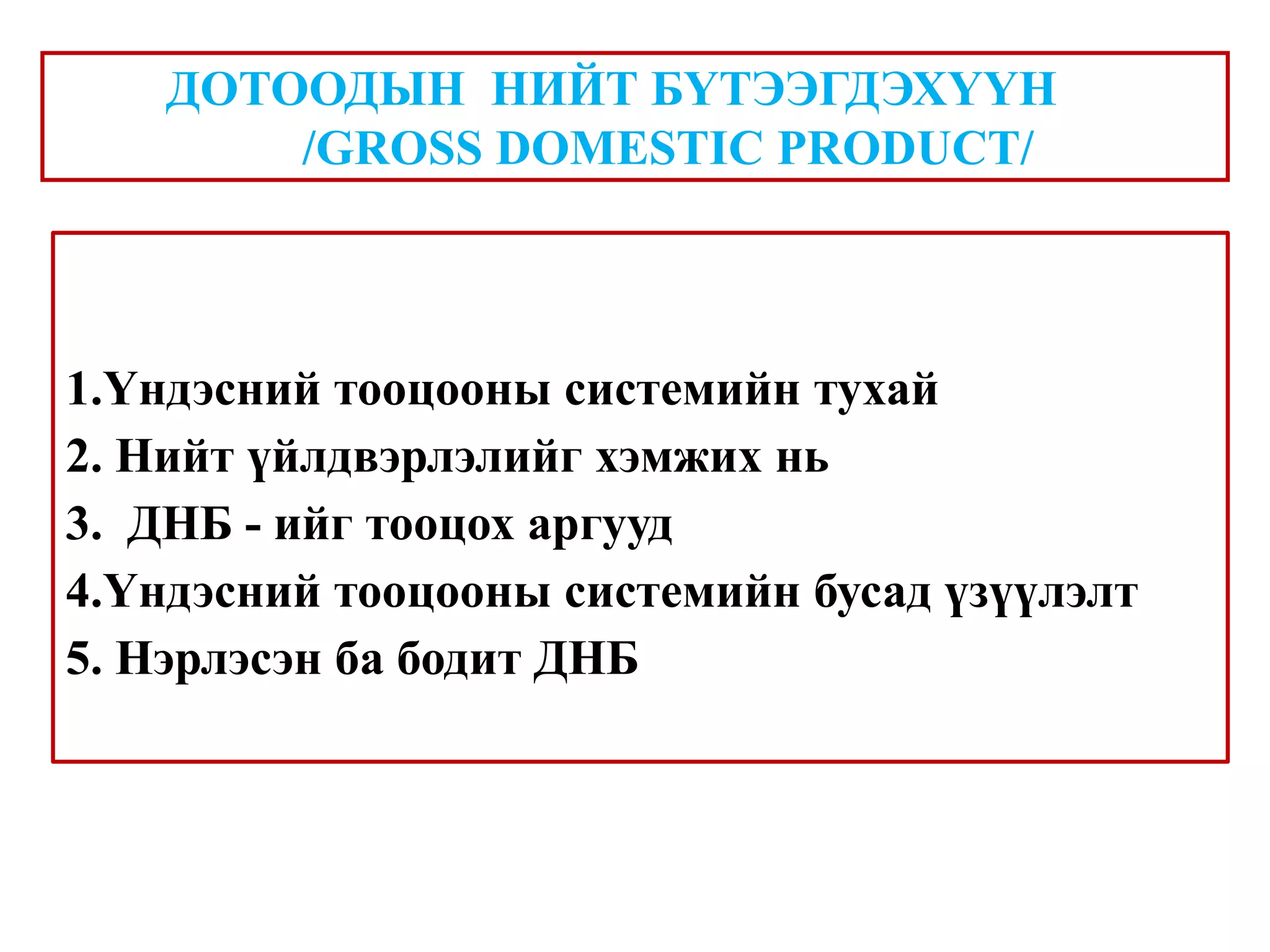 Macro l2. gdp 1. 1.Үндэсний тооцооны системийн тухай