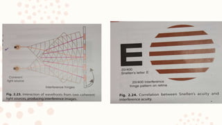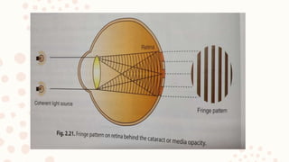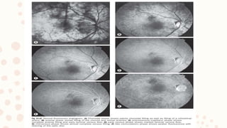 The document provides a comprehensive overview of macular function tests conducted by Dr. Ankita Mahapatra, focusing on the anatomy and functions of the macula, particularly its critical role in central vision and color perception. It describes various tests used to assess macular health, including visual acuity, contrast sensitivity, and specialized procedures for both clear and opaque media. Diagnostic techniques such as fluorescein angiography and optical coherence tomography are also discussed, emphasizing their importance in diagnosing macular disorders.