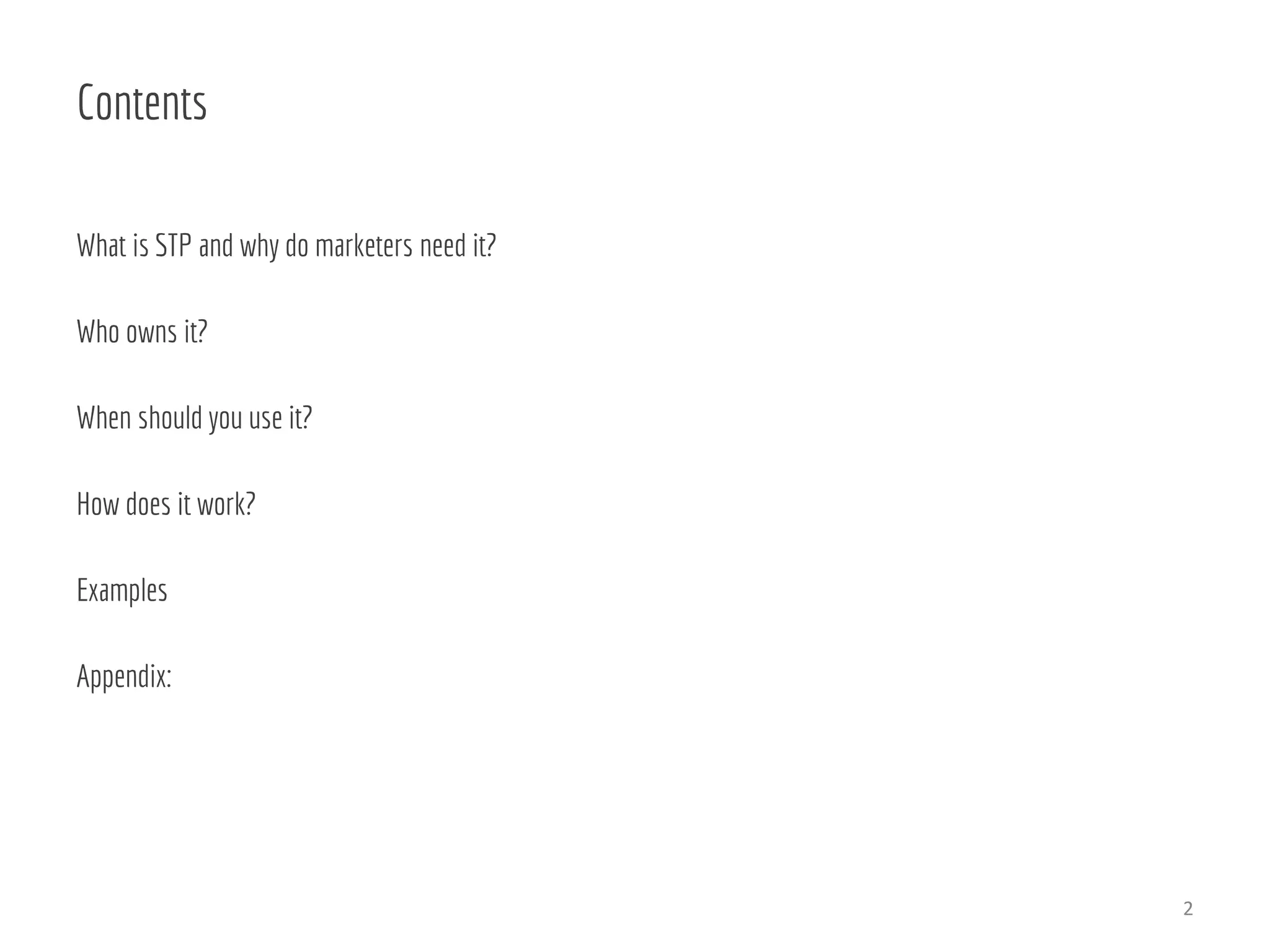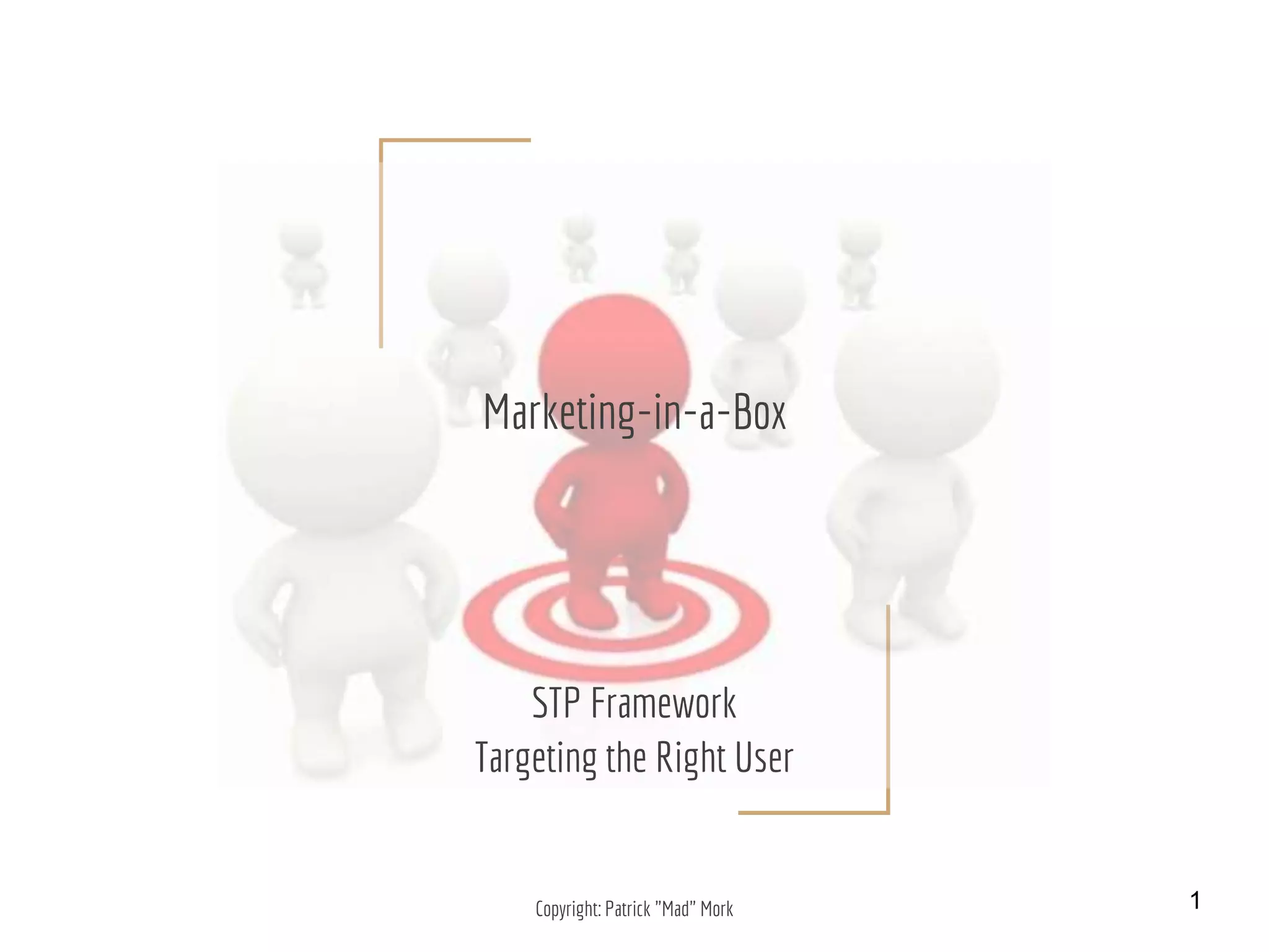 The STP (Segmenting, Targeting, Positioning) framework helps marketers understand their market and identify segments with unmet needs to create relevant messaging. It involves segmenting the market into identifiable groups, choosing an underserved segment to target, and developing unique and relevant positioning for that audience. Proper implementation of STP is crucial in competitive markets to ensure effective communication and product alignment.
