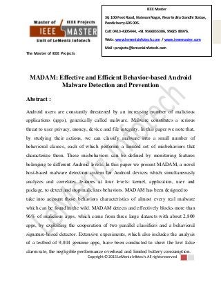 MADAM Effective and Efficient Behavior based Android Malware Detection and Prevention