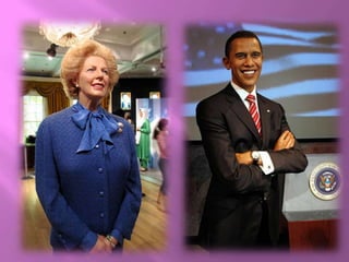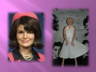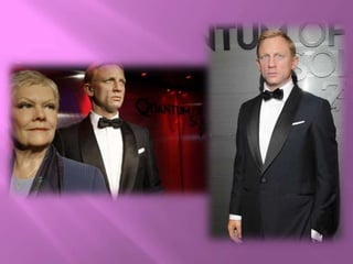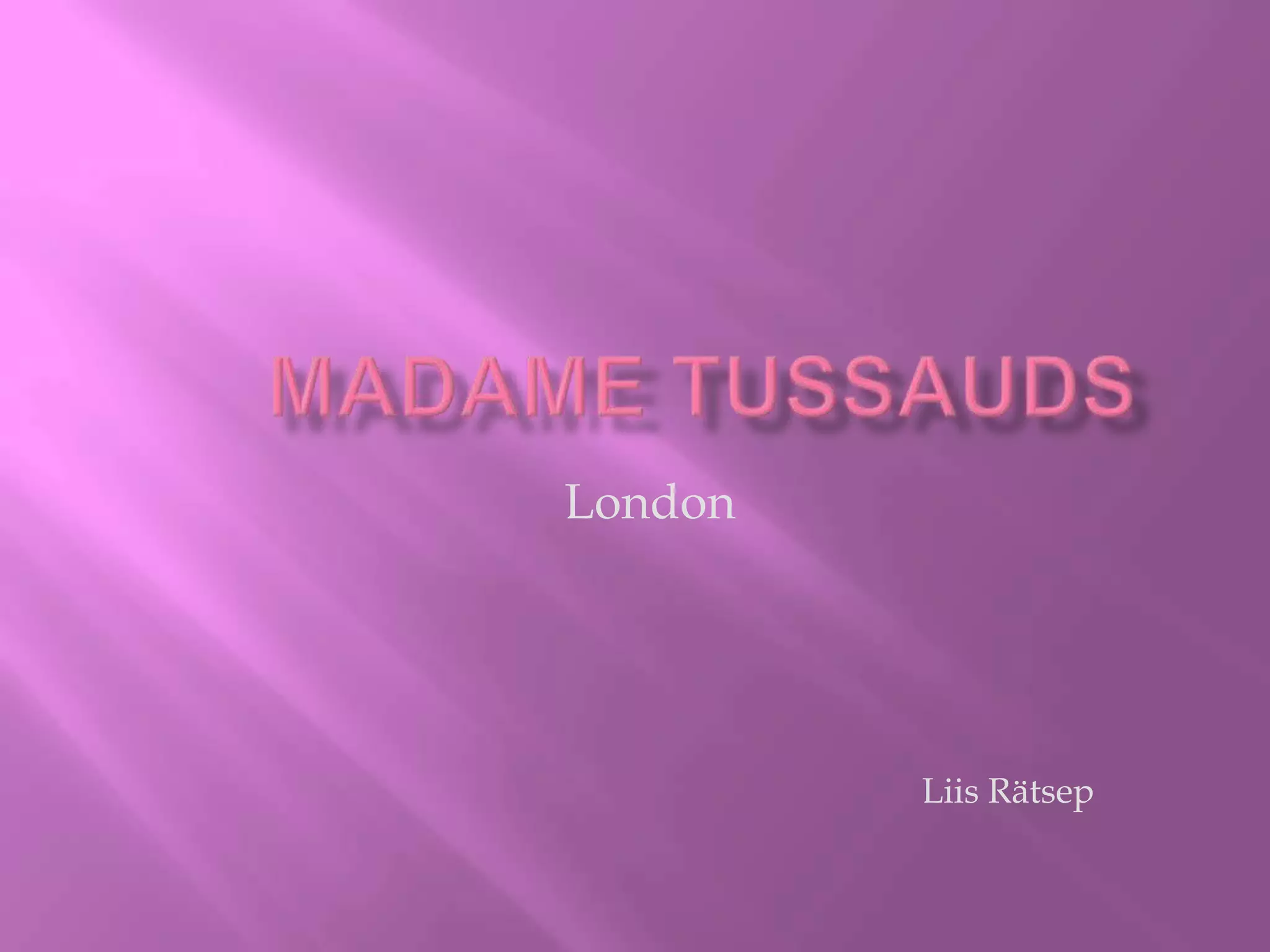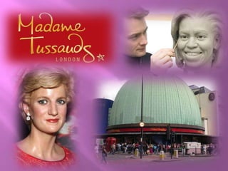 Madame Tussauds in London is a wax museum that contains over 200 life-like figures of famous people grouped into different themed zones. Some of the zones include an A-List celebrity party room, sports figures, world leaders like Obama and Churchill, characters from movies and music like Michael Jackson and The Beatles, and historical figures like Einstein and Darwin. Visitors can interact with some of the displays, take photos, and learn about the history of the museum which was founded in London in 1802 by wax sculptor Madame Tussauds.