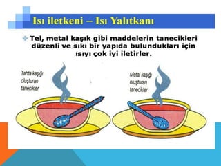 aracılığı ile sıcak uçtan soğuk uca iletilmesidir.Bütün maddeler taneciklerden oluştuğu için katı,