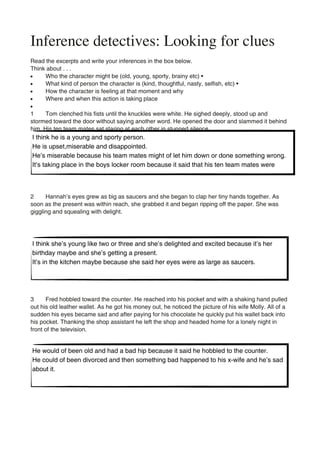 Tom was upset after an interaction with his ten teammates, clenching his fists until they turned white before storming out of the locker room and slamming the door behind him in stunned silence. Hannah, who was likely young like age two or three, was delighted to receive a birthday present, ripping off the wrapping paper while giggling and squealing. Fred, who was older and had a bad hip as he hobbled, became sad after seeing a picture of his deceased wife Molly in his wallet while paying for chocolate at a shop, then returning home for a lonely night watching TV.