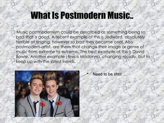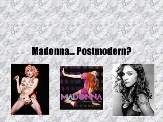 1) Madonna is considered a postmodern artist because she frequently changed her musical style and image over her career to keep up with trends.