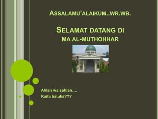 MA Al-Muthohhar adalah lembaga pendidikan di Purwakarta yang didirikan pada 15 Juni 1989, berfokus pada pendidikan agama dan umum untuk membentuk generasi yang beriman dan berilmu. Sekolah ini memiliki visi untuk menghasilkan lulusan yang unggul dalam prestasi dan mengembangkan diri sesuai ilmu pengetahuan serta teknologi. Dengan berbagai organisasi intra dan ekstra kurikuler, MA Al-Muthohhar berkomitmen untuk menciptakan suasana belajar yang kondusif dan mendukung perkembangan siswa.