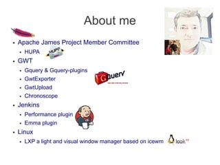 Manuel Carrasco Moñino proposes using modern web technologies like HTML5 and JavaScript to build rich internet applications that can run on desktops, mobile devices, and tablets from a single codebase. He suggests frameworks like Google Web Toolkit (GWT), Apache Cordova, PlayN, and NoSQL databases to develop cross-platform applications in a high-level language like Java. Carrasco provides examples of projects using these techniques and encourages contributing to open source.