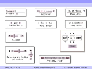 The document outlines the Maemo development platform, specifically for the Nokia 770 device, emphasizing its end-user optimized interface and software that caters to limited hardware capabilities. It discusses key aspects such as Hildon UI style, memory and performance considerations, essential widgets, and future development prospects. Additionally, it provides links to resources for tutorials, API references, and community support.